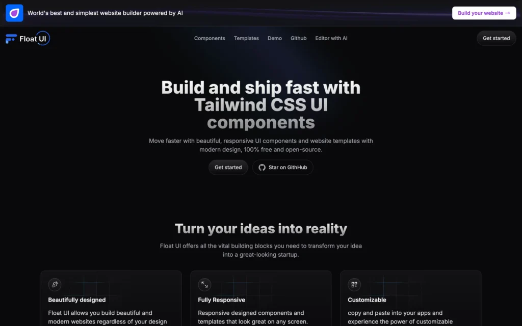عندما يتعلق الأمر بالبساطة والوظيفية، تُعتبر Float UI خيارًا بارزًا. تتضمن هذه المكتبة المجانية كل شيء بدءًا من أقسام البطل (hero sections) وحتى جداول التسعير، كلها مصممة مسبقًا لتوفير الوقت والجهد.