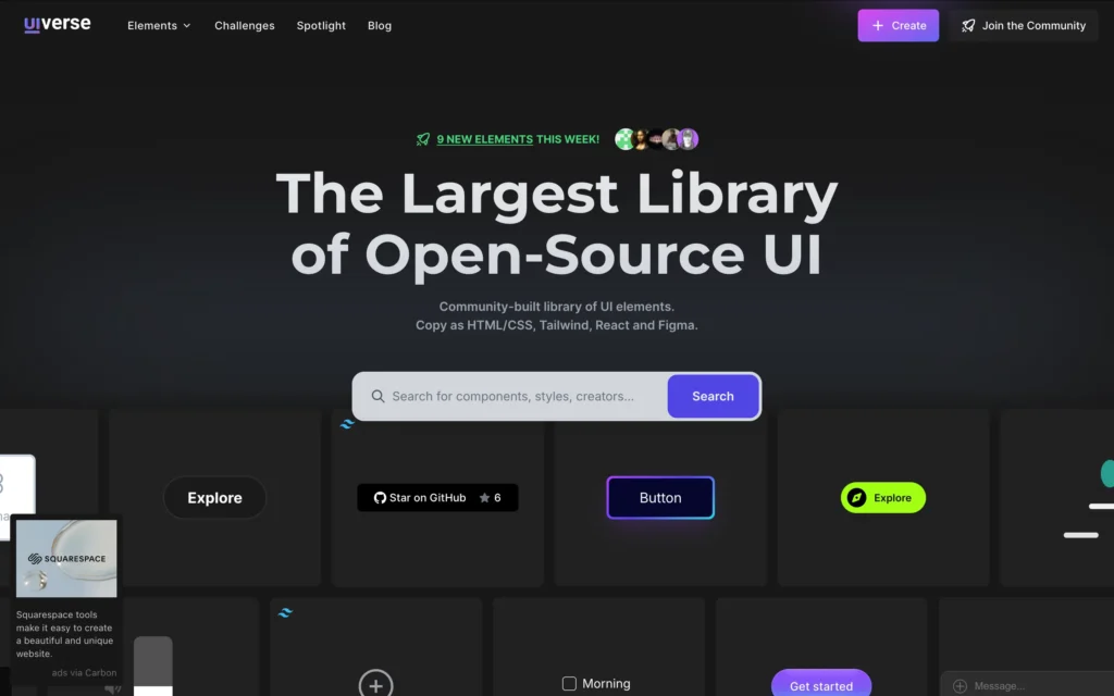 إذا كنت قد تمنيت يومًا وجود مكتبة لمكونات واجهة المستخدم تشبه منصة Pinterest، فإن UIverse هي الإجابة على طلباتك. بدءًا من الأزرار المتوهجة إلى أشرطة التقدم الأنيقة، تقدم هذه المكتبة مجموعة مختارة بعناية من العناصر الجاهزة للاستخدام.